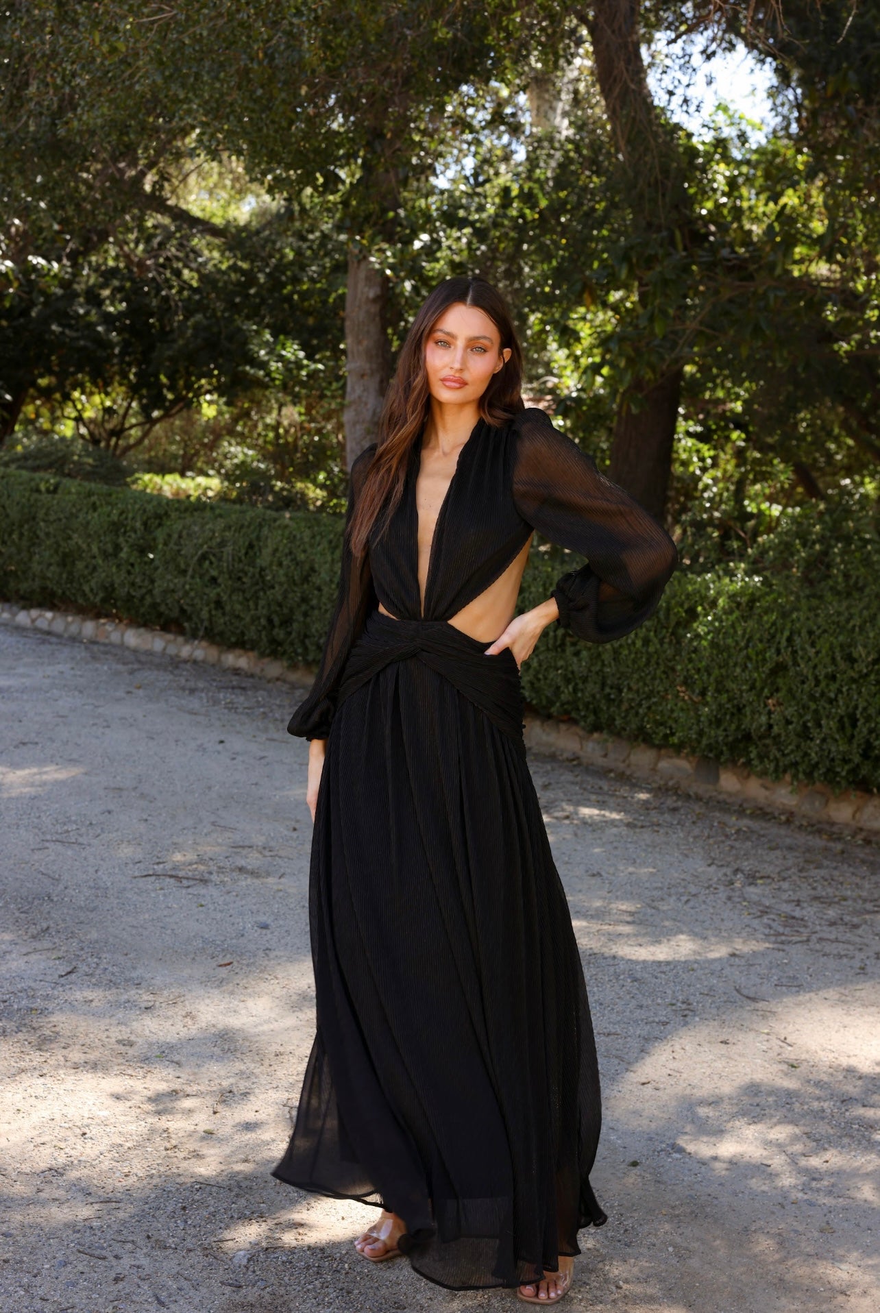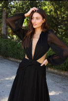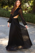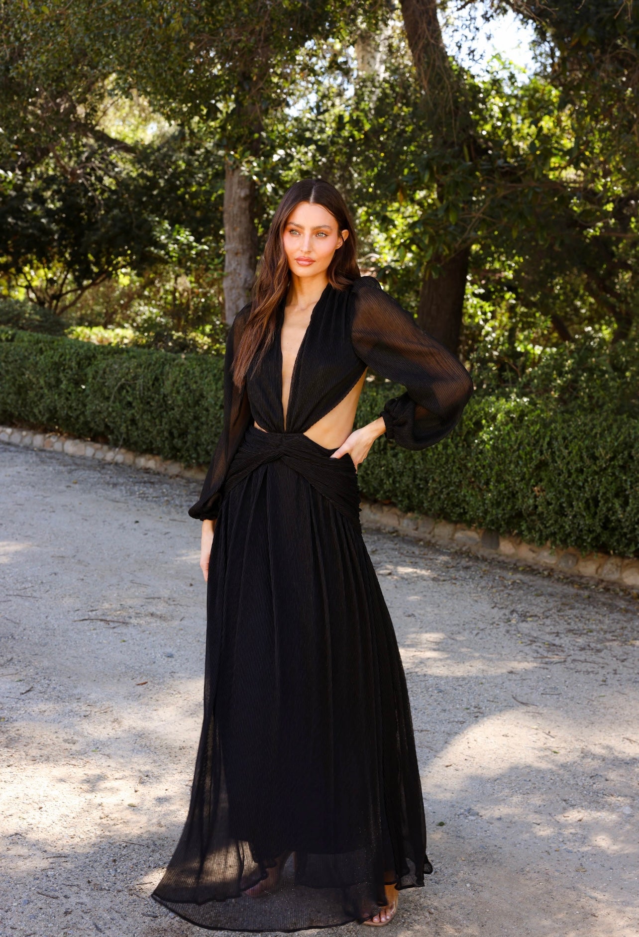 Indulge in the opulence of The Goddess Pink Dress. This exquisite dress boasts a goddess blue hue with subtle hints of gold. The sheer sleeves add a touch of elegance while the cut out design and flowy skirt create a stunning silhouette. With a backless style and intricate button and zip details, this dress is truly a work of art. Beautifully Lined.