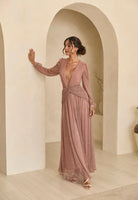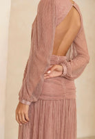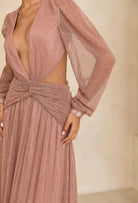 Indulge in the opulence of The Goddess Pink Dress. This exquisite dress boasts a goddess blue hue with subtle hints of gold. The sheer sleeves add a touch of elegance while the cut out design and flowy skirt create a stunning silhouette. With a backless style and intricate button and zip details, this dress is truly a work of art. Beautifully Lined.